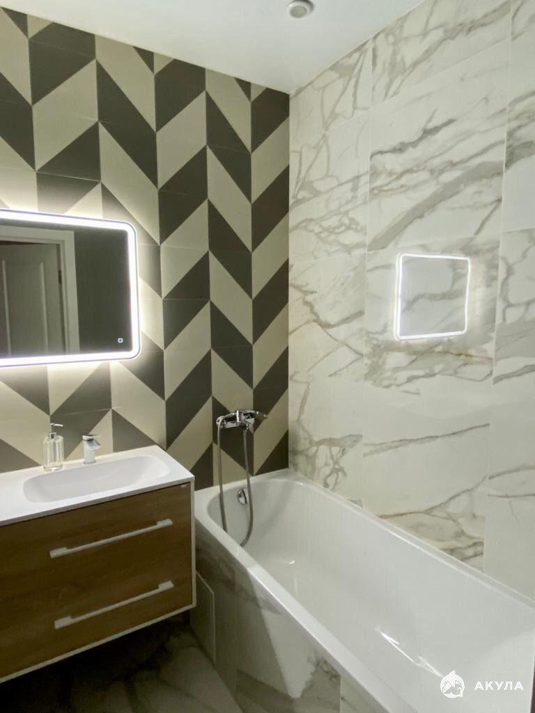 Сан. узел выполнен в итальянской плитке, установлена качественная сантехника.